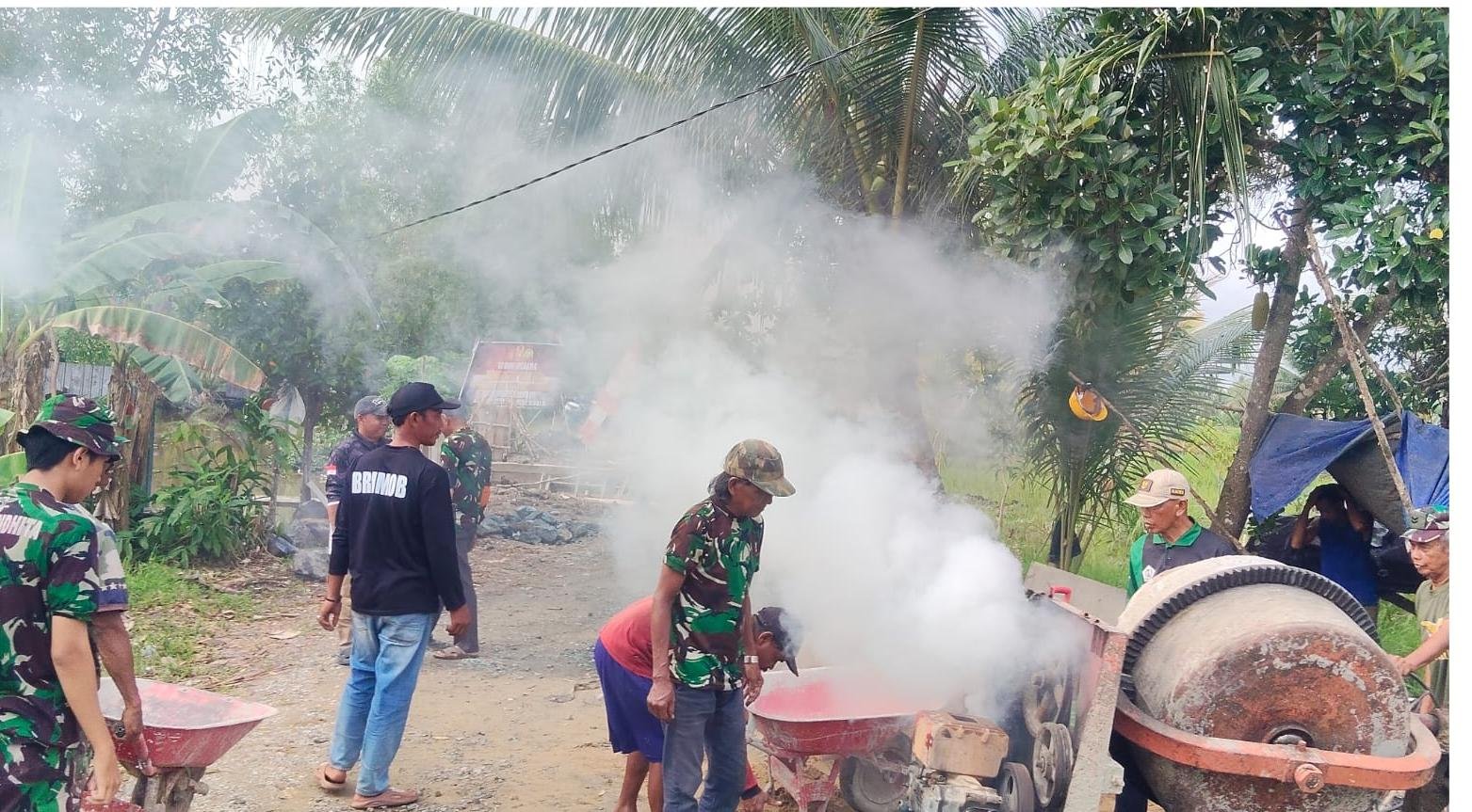 Terlihat di lokasi, Babinsa Koramil 1005-10/Tamban, Sertu Salim, turun tangan langsung bahu-membahu bersama masyarakat setempat. Dengan semangat gotong royong yang tinggi, ia terlihat aktif membantu proses pengecoran mulai dari persiapan material hingga pengerjaan akhir, memastikan setiap tahapan berjalan sesuai dengan standar teknis yang telah ditentukan.
