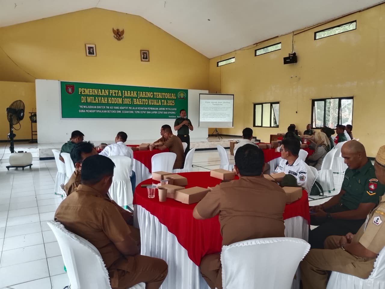 <p><strong>Marabahan, Kalimantan Selatan –</strong> Kodim 1005/Barito Kuala kembali menunjukkan komitmennya dalam memperkuat pembinaan teritorial dan mempererat kemanunggalan TNI–Rakyat melalui kegiatan Pembinaan Peta Jarak Jaring Teritorial TA 2025, bertempat di Aula Moch Yamin Kodim 1005/Batola, Marabahan, Kabupaten Barito Kuala, Pada Selasa (18 November 2025).</p>