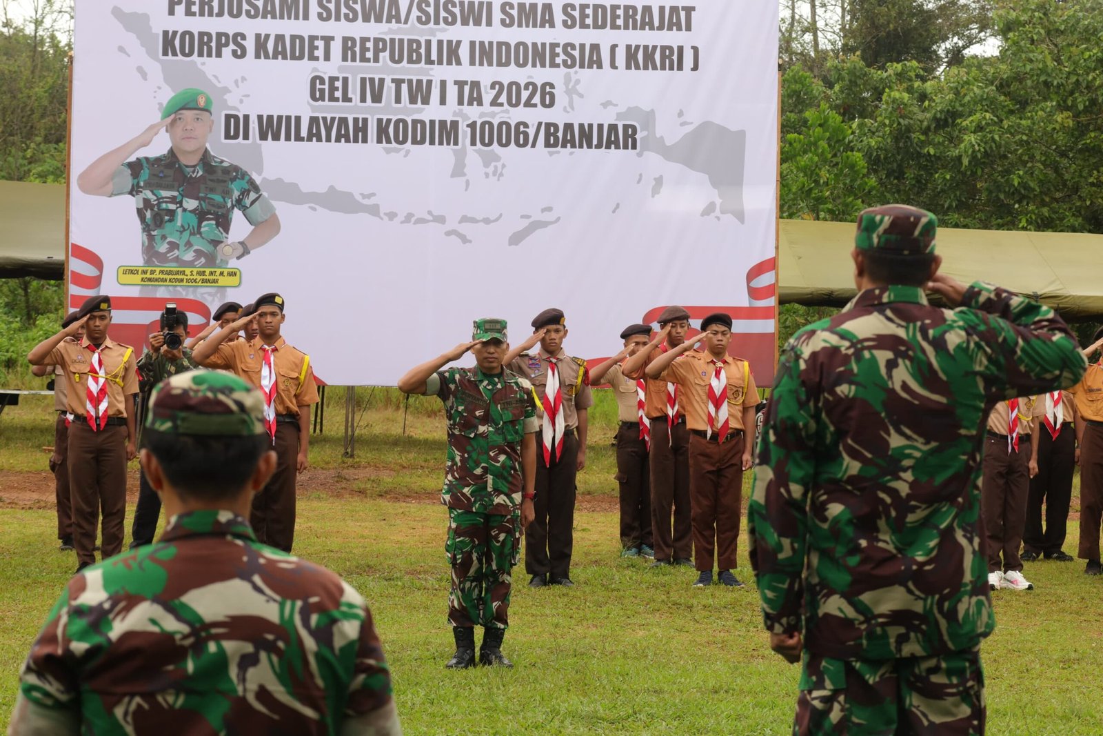 Banjarbaru – Kodim 1006/Banjar melaksanakan upacara pembukaan Korps Kadet Republik Indonesia (KKRI) Gelombang IV Tahun 2026 di Lapangan Denzipur 8/GM, Jalan A. Yani Km 30,5 Guntungmanggis, Kecamatan Landasan Ulin, Kota Banjarbaru, Kalimantan Selatan, Jumat (13/2/2026) sore. Kegiatan ini menjadi tanda dimulainya pelatihan karakter dan kedisiplinan bagi 100 siswa/siswi SMA/SMK sederajat yang akan berlangsung selama tiga hari, 13 hingga 15 Februari 2026.