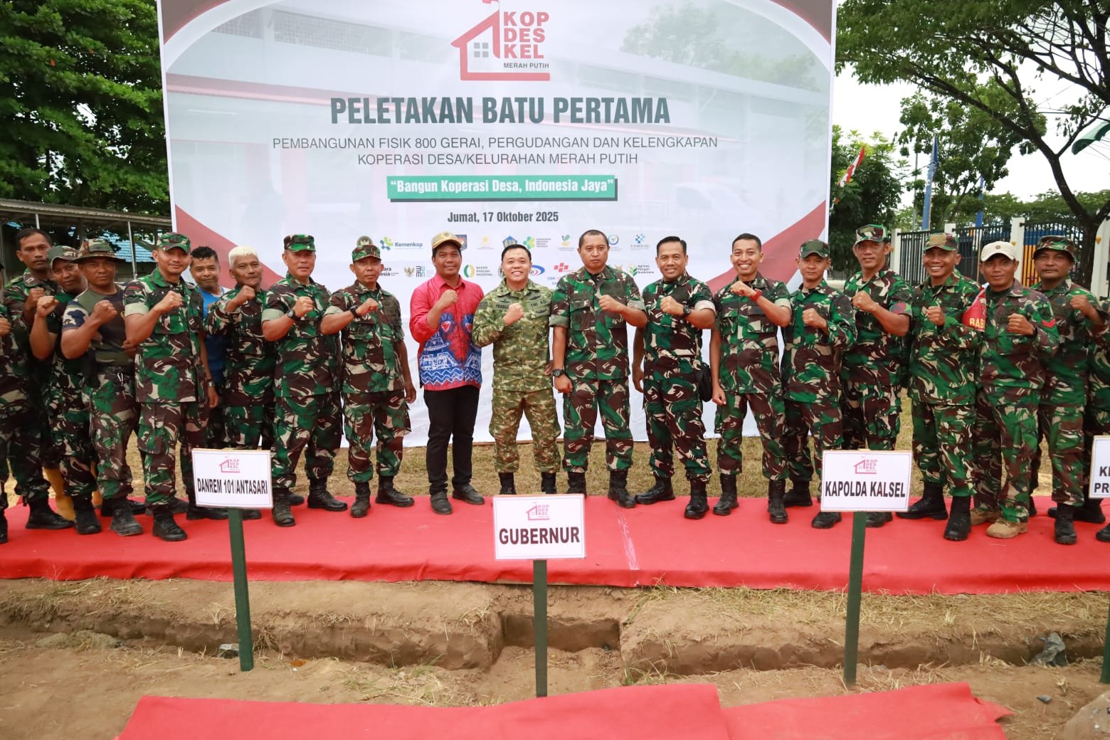 Banjar – Kodim 1006/Banjar turut berperan aktif dalam kegiatan Peletakan Batu Pertama Pembangunan Fisik 800 Gerai, Pergudangan dan Kelengkapan Koperasi Desa/Kelurahan (Kopdes) Merah Putih yang dilaksanakan di Kantor Desa Indrasari, Kecamatan Martapura, Kabupaten Banjar, Jumat (17/10/2025).