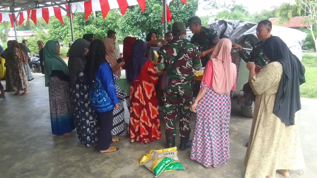BANJAR – Kodim 1006/Banjar melalui jajaran Babinsa Koramil 1006-03/Simpang Empat bersama perangkat desa melaksanakan kegiatan Gerakan Pangan Murah (GPM) di Kantor Desa Surian Hanyar, Kecamatan Cintapuri Darussalam, Kabupaten Banjar, Kamis (18/9).