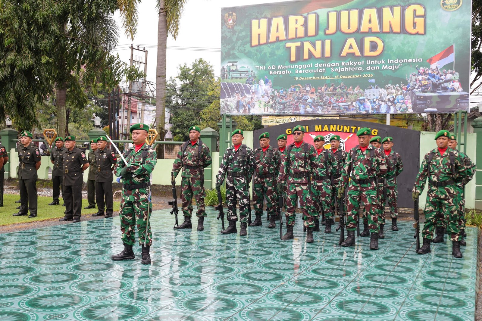 MARTAPURA — Kodim 1006/Banjar melaksanakan Upacara Peringatan Hari Juang TNI Angkatan Darat Tahun 2025 yang digelar di halaman Makodim 1006/Banjar, Jalan A. Yani Km 39, Kelurahan Jawa, Kecamatan Martapura, Kabupaten Banjar, Senin (15/12/2025) pagi.