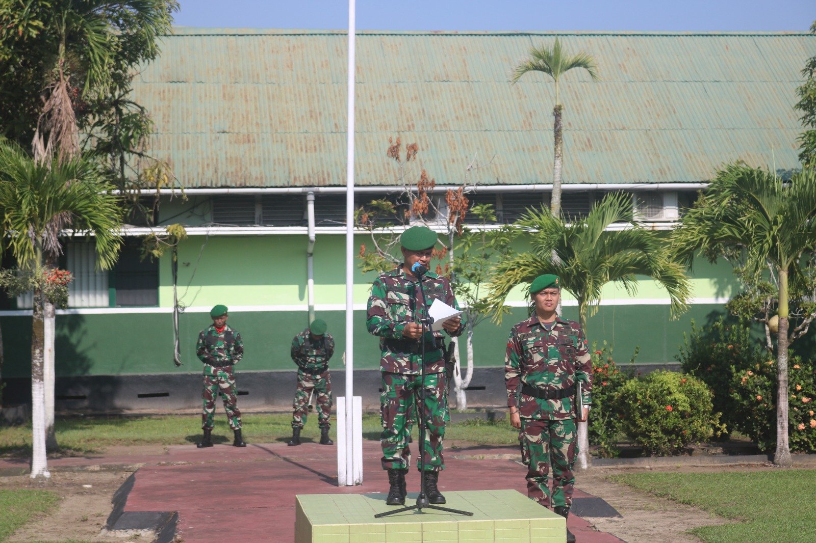 KETAPANG – Jajaran Kodim 1203/Ketapang melaksanakan upacara bendera bulanan tanggal 17 di lapangan upacara Makodim 1203/Ketapang pada Selasa pagi. Upacara yang berlangsung dengan penuh disiplin ini dipimpin oleh Mayor Inf Mardianus selaku Inspektur Upacara dan Kapten Inf Yulianto yang bertindak sebagai Komandan Upacara. Selasa, (17/03/2026).