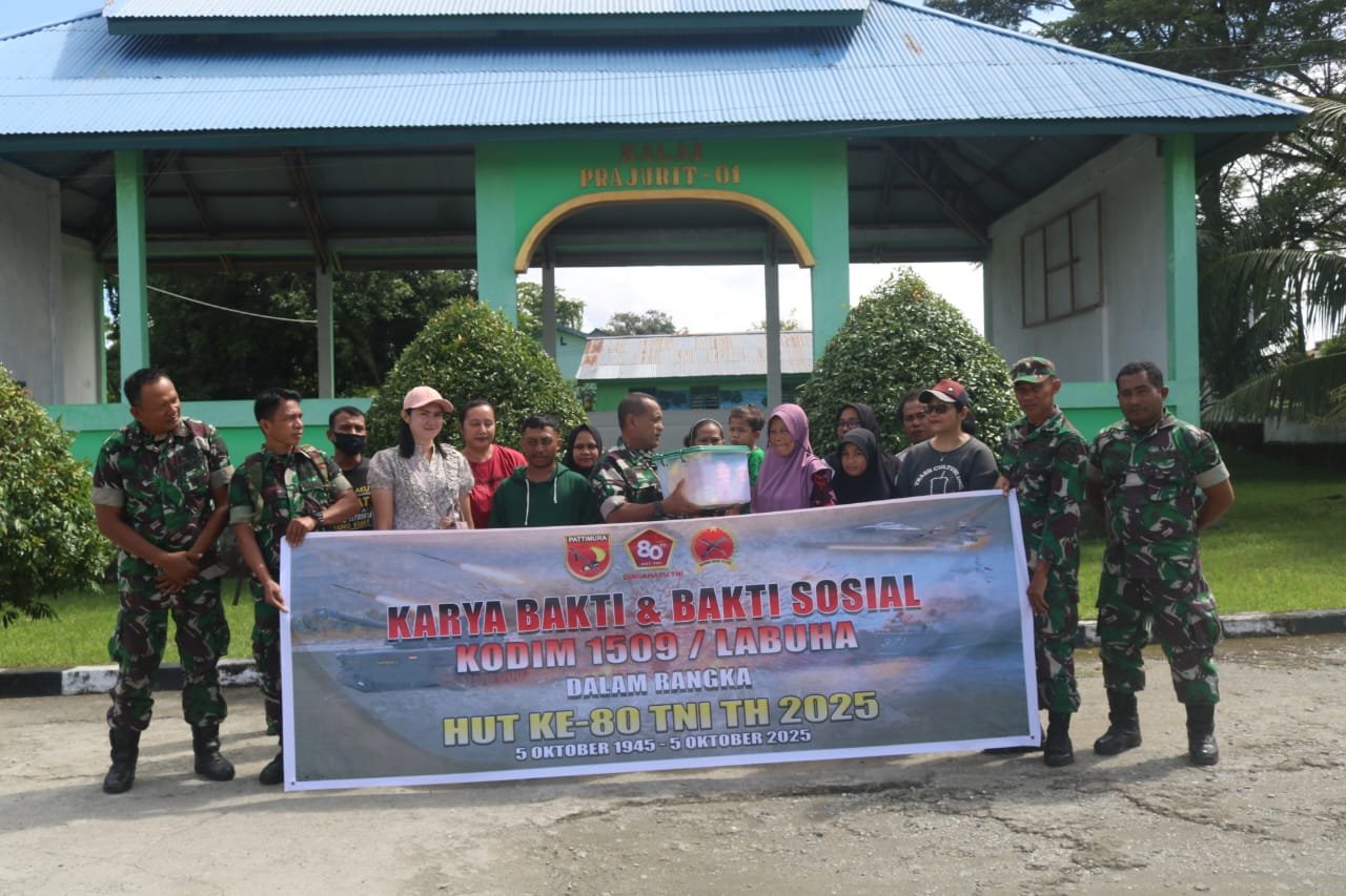 HALMAHERA SELATAN – Menjelang peringatan ke-80 HUT TNI, Kodim 1509/Labuha memberikan santunan kepada Para Janda Dan Fakir Miskin yang ada di sekitar kecamatan Bacan Dan Kecamatan Bacan Selatan, Pemberian Santuan Tersebut dilakukan di Koramil 1509-01/Bacan dan Secara Door To Door, Sabtu (20/09/2025),
