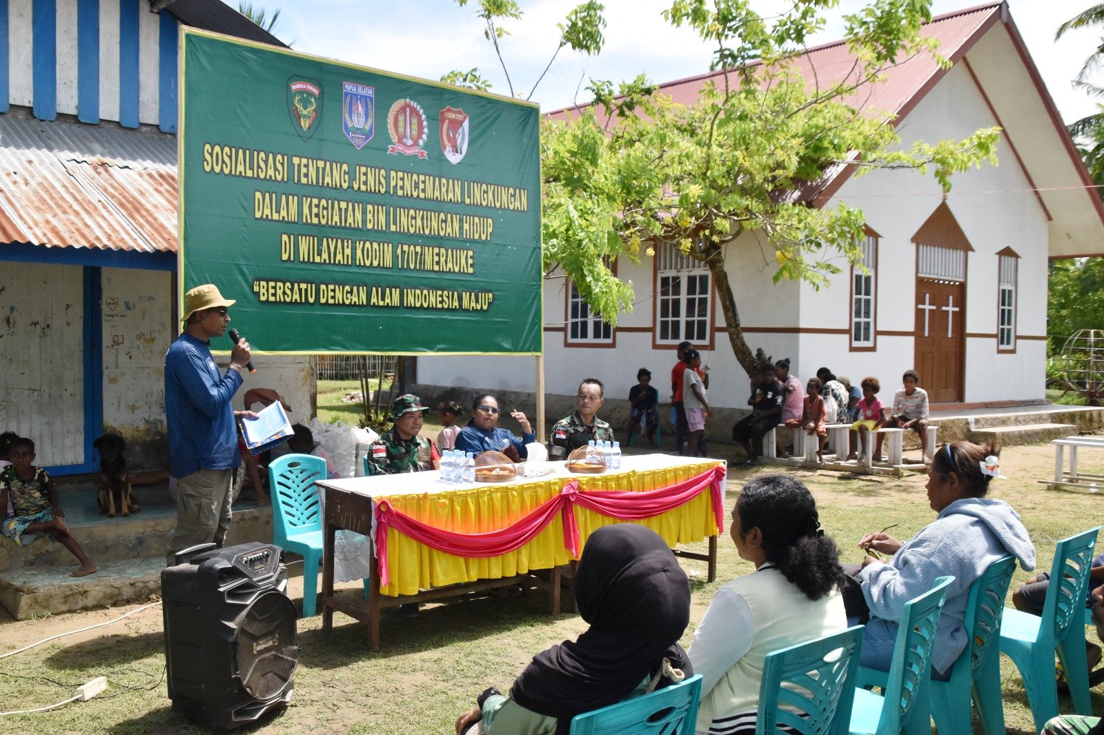 <p>Sosialisasi tersebut terlaksana atas kerja sama Kodim 1707/Merauke dengan Dinas Lingkungan Hidup Provinsi Papua Selatan. Hadir sebagai narasumber, Bapak Yanuarius Filipus Ulukyanan Kepala Seksi Penyuluhan Bidang DAS dan Perhutsos Dinas Lingkungan Hidup Kehutanan dan Pertanahan Prov. Papua selatan, yang menyampaikan materi dengan bahasa sederhana agar mudah dipahami, khususnya oleh anak-anak dan warga setempat.</p>
