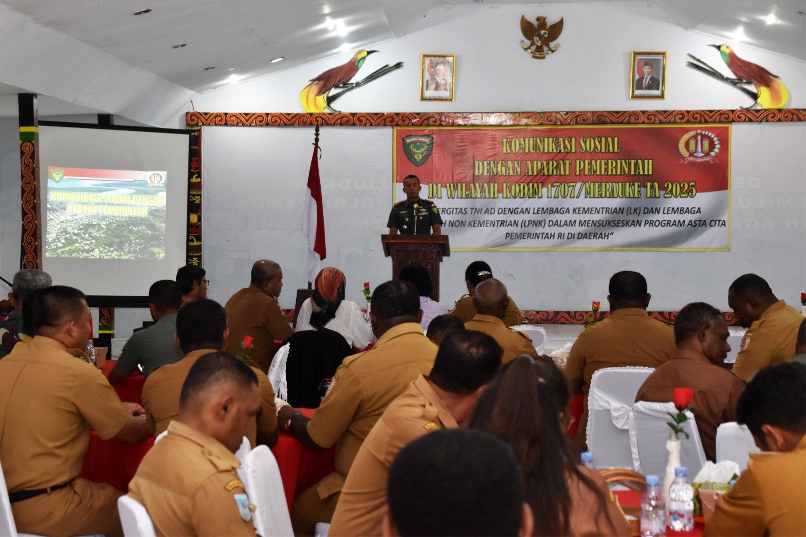<p>Hal tersebut disampaikan langsung oleh Dandim 1707/Merauke Letkol Czi Dili Eko Setyawan, S.Ak., M.Han saat memberikan sambutan pada kegiatan Komsos bersama Aparat Pemerihtah Tahun 2025 bertempat di Aula Anim Ha Makodim 1707/Merauke Jln. Raya Mandala Kota Merauke, Kab. Merauke – Provinsi Papua Selatan. Selasa (25/11/25).</p>