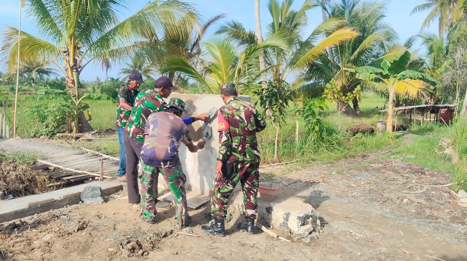 Kehadiran personel TNI di lokasi pembangunan tidak hanya sebagai pengawas, namun juga menjadi motivator dan pelaku langsung dalam setiap tahapan pekerjaan. Hal ini menjadi bukti nyata sinergi dan kemanunggalan TNI dengan rakyat dalam upaya mewujudkan fasilitas umum yang layak dan bermanfaat bagi masyarakat luas.