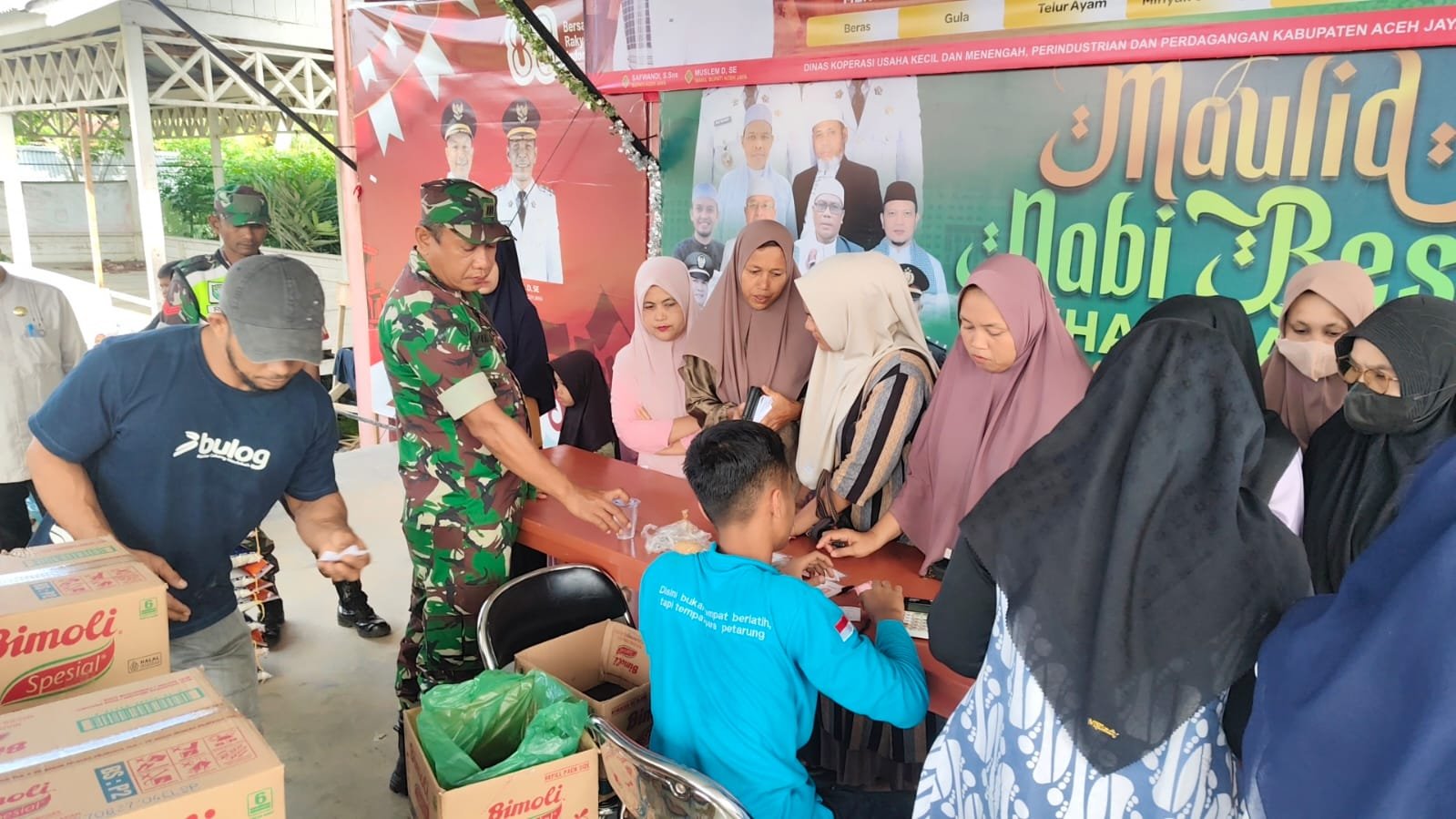 Aceh Jaya – Dalam rangka memperingati Hari Ulang Tahun (HUT) Tentara Nasional Indonesia (TNI) ke-80 tahun 2025, Koramil 01/Jaya Kodim 0114/Aceh Jaya bersama Musyawarah Pimpinan Kecamatan (Muspika) Jaya serta Dinas Koperasi dan Perdagangan (Diskoperindag) Kabupaten Aceh Jaya, Sabtu (13/09), menggelar kegiatan Bakti Teritorial Prima. Acara yang fokus pada bakti sosial pasar murah ini dilaksanakan di halaman gedung kader Kecamatan Jaya, Kabupaten Aceh Jaya, sebagai bentuk nyata pengabdian TNI untuk masyarakat menjelang peringatan hari jadinya.