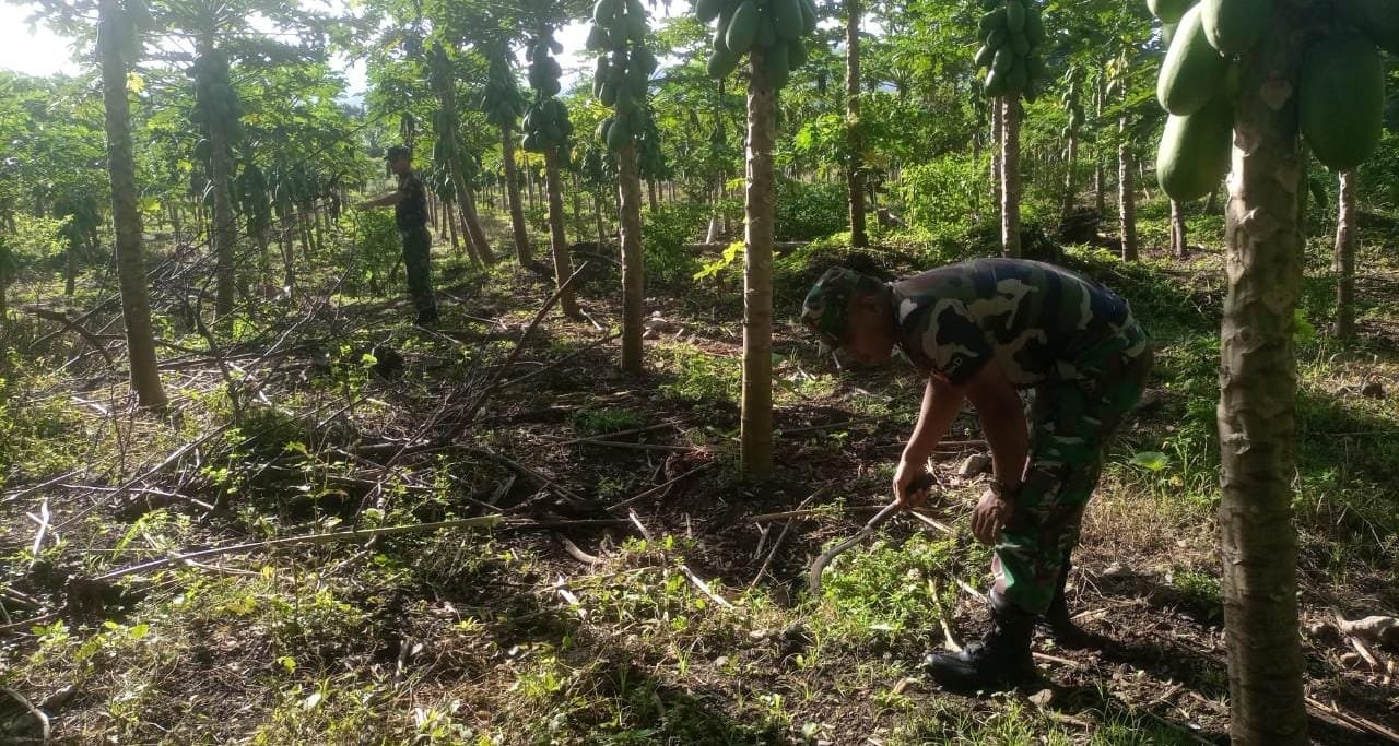 Koramil 01/Jaya Meningkatkan Ketahanan Pangan Melalui Perawatan Kebun Serentak