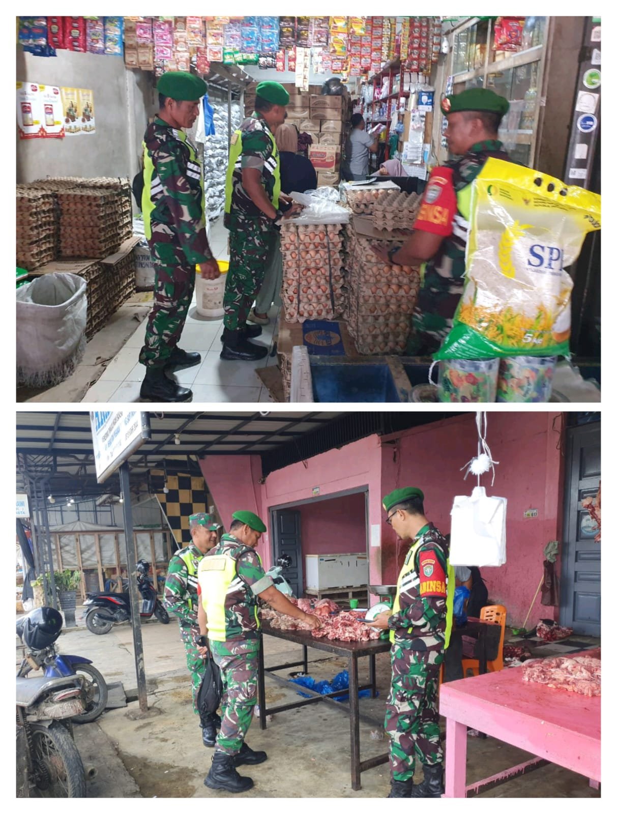 ACEH BARAT — Koramil 03/Kaway XVI Kodim 0105/Aceh Barat mengerahkan anggotanya untuk melakukan pengecekan langsung ketersediaan stok serta perkembangan harga sembako di sejumlah pasar di Kecamatan Kaway XVI, Kabupaten Aceh Barat, Selasa (23/12/2025).