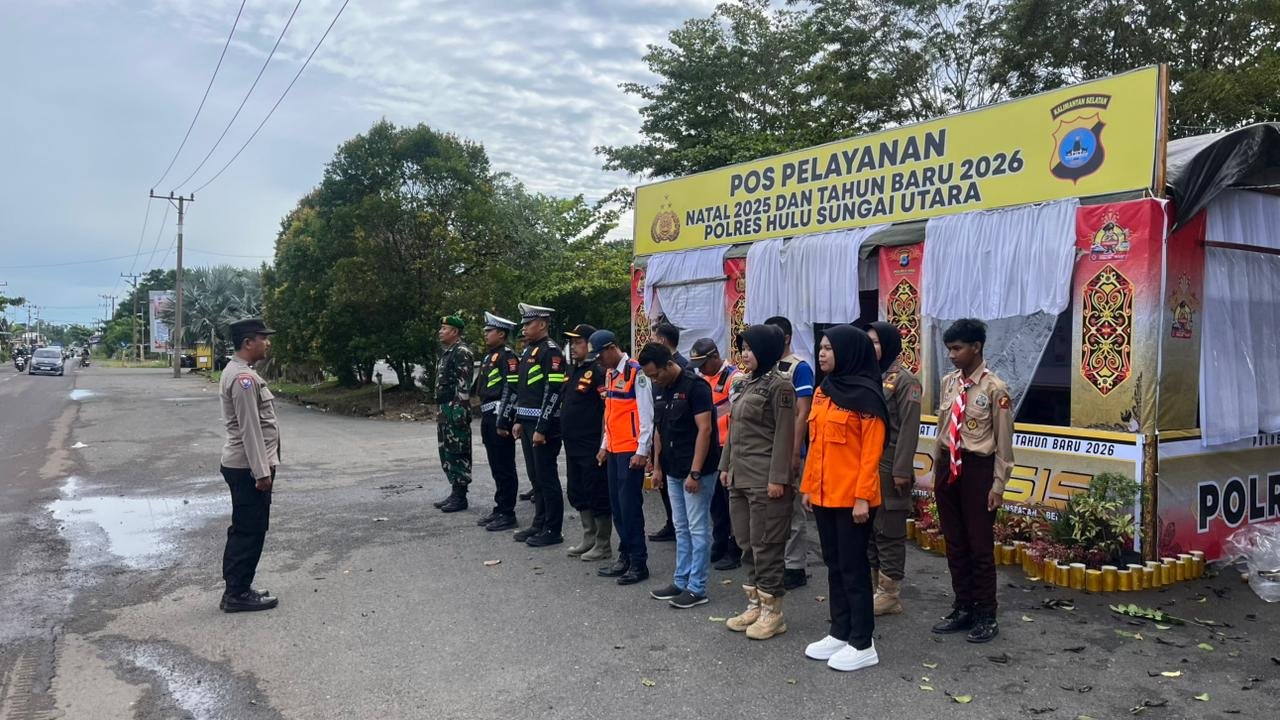 <p><strong>HULU SUNGAI UTARA &#8211; </strong>Dalam rangka mendukung kelancaran dan keamanan perayaan Natal dan Tahun Baru (Nataru) 2025, Koramil 1001-06/Amuntai Utara Kodim 1001/HSU melaksanakan Pengamanan (Pam) Gabungan Posko Nataru di Rest Area Putri Junjung Buih, Muara Tapus, pada Sabtu (20/12/2025).</p>