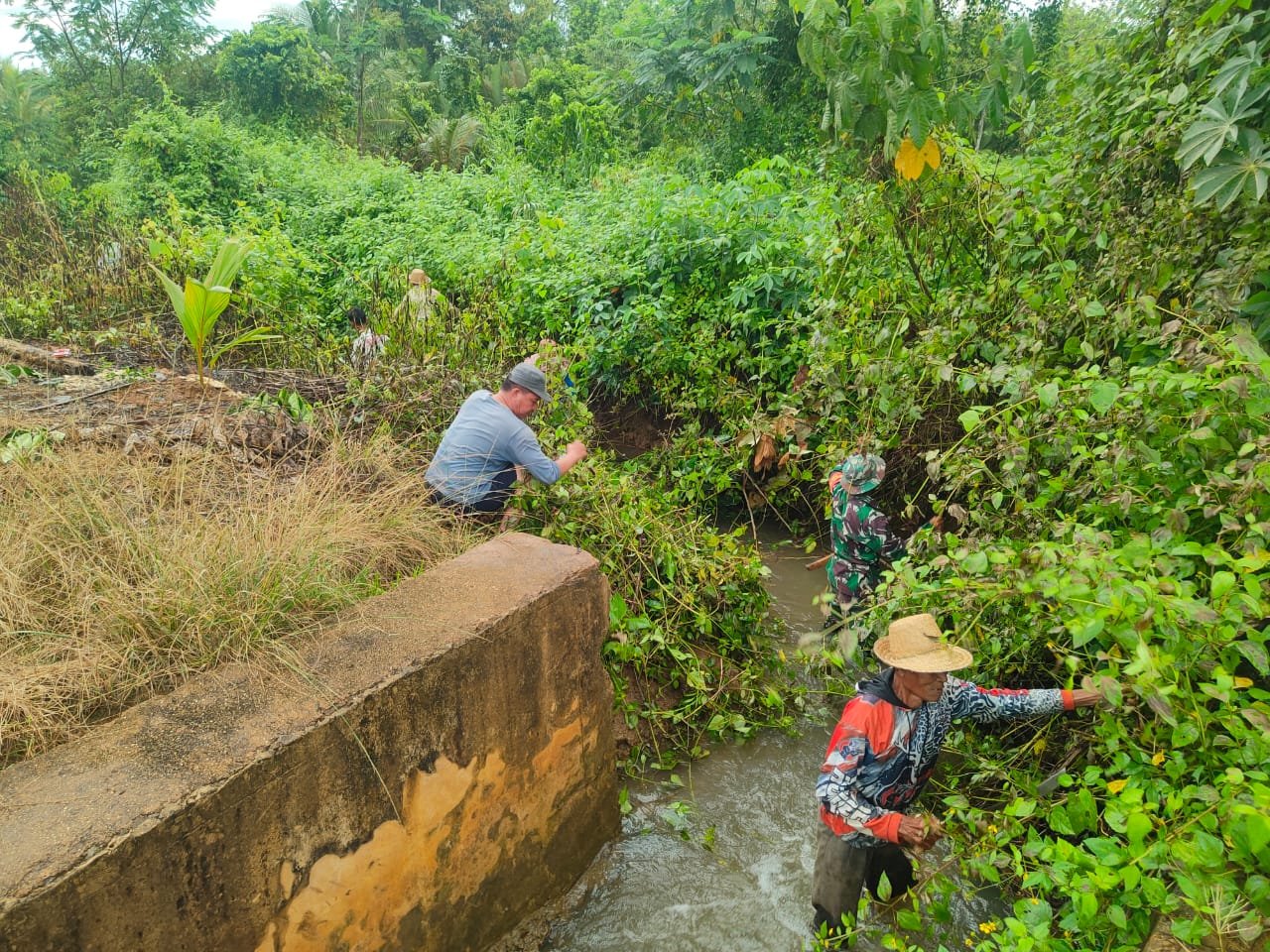 Kegiatan tersebut melibatkan personel Koramil bersama masyarakat setempat yang bergotong-royong membersihkan sampah, lumpur, dan rerumputan yang menghambat aliran air di sungai serta saluran irigasi pertanian. Langkah ini dilakukan untuk mencegah terjadinya penyumbatan dan genangan air yang dapat mengganggu aktivitas pertanian masyarakat.