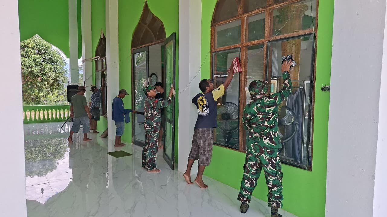Kegiatan karya bakti ini dilaksanakan bersama masyarakat setempat dengan penuh semangat kebersamaan dan gotong royong. Personel Koramil bersama warga melakukan pembersihan halaman, perapihan lingkungan sekitar, serta perawatan fasilitas masjid agar lebih bersih, nyaman, dan layak digunakan untuk beribadah.