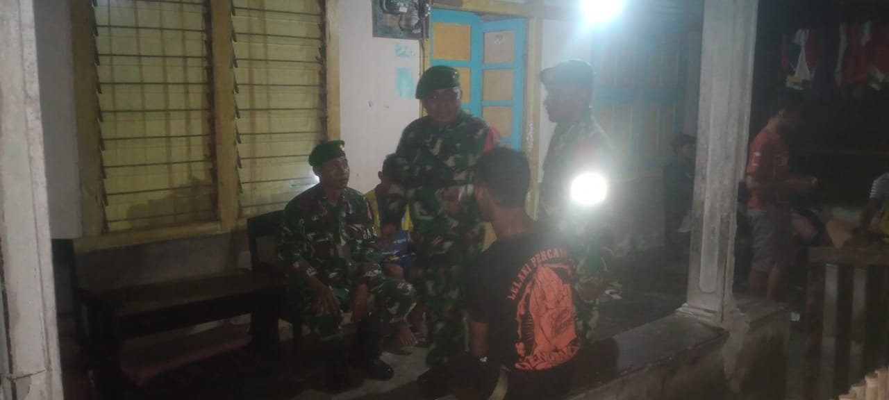 Sekitar pukul 23.00 WIT, Serma Umasangaji mendatangi salah satu poskamling di wilayah Guraping, untuk memantau kegiatan ronda malam sekaligus melaksanakan komunikasi sosial (komsos) dengan warga agar terus meningkatkan kewaspadaan.