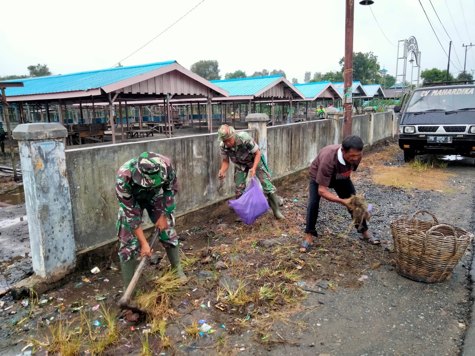 Barito Kaula — Dalam upaya menjaga kebersihan lingkungan dan mencegah potensi banjir serta penyebaran penyakit di musim penghujan, Koramil 1005-06/Belawang melaksanakan kegiatan karya bakti (karbak) terpadu berupa pembersihan pasar, selokan, dan penanaman pohon di wilayah Kecamatan Belawang, Kabupaten Barito Kuala. Kegiatan ini berlangsung pada Selasa, 6 Januari 2026, dengan melibatkan unsur TNI, Polri, aparatur desa, dan masyarakat setempat.