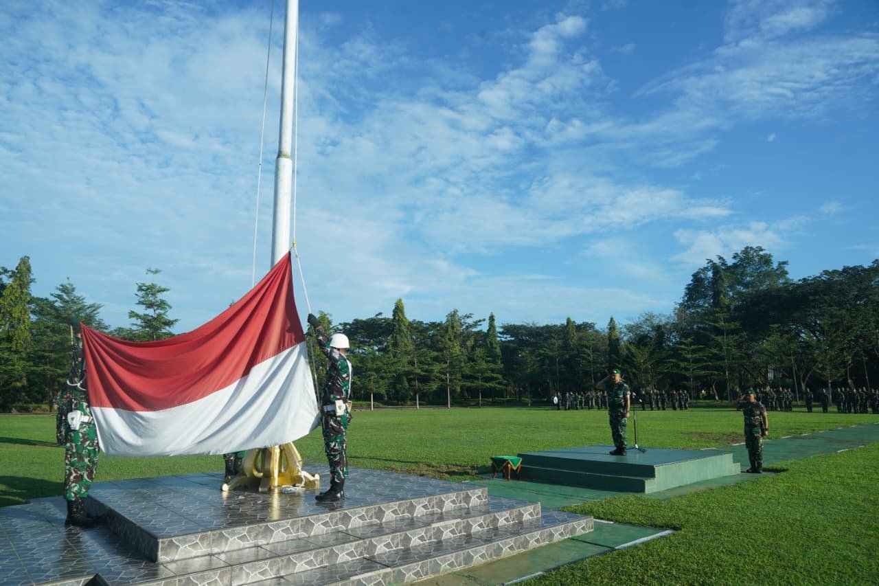 Prosesi upacara diawali dengan pengibaran Bendera Merah Putih, dilanjutkan dengan pengucapan Sapta Marga, Sumpah Prajurit, dan Delapan Wajib TNI oleh prajurit yang telah ditunjuk. Seluruh rangkaian kegiatan berlangsung dengan tertib, lancar, dan penuh semangat.