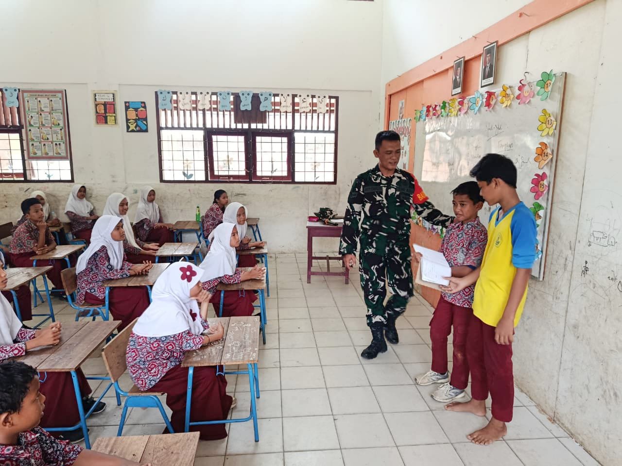 RUNDENG – Babinsa Koramil 0118-02/Rundeng Kodim 0118/Subulussalam, Korem 012/Teuku Umar, Sertu Dedi Parmadi Ritonga, memberikan pembekalan Wawasan Kebangsaan dan motivasi kepada siswa-siswi SD Negeri SP IV Dah Sepadan, Desa Sepadan, Kecamatan Rundeng, Kota Subulussalam, Selasa (21/10/2025).