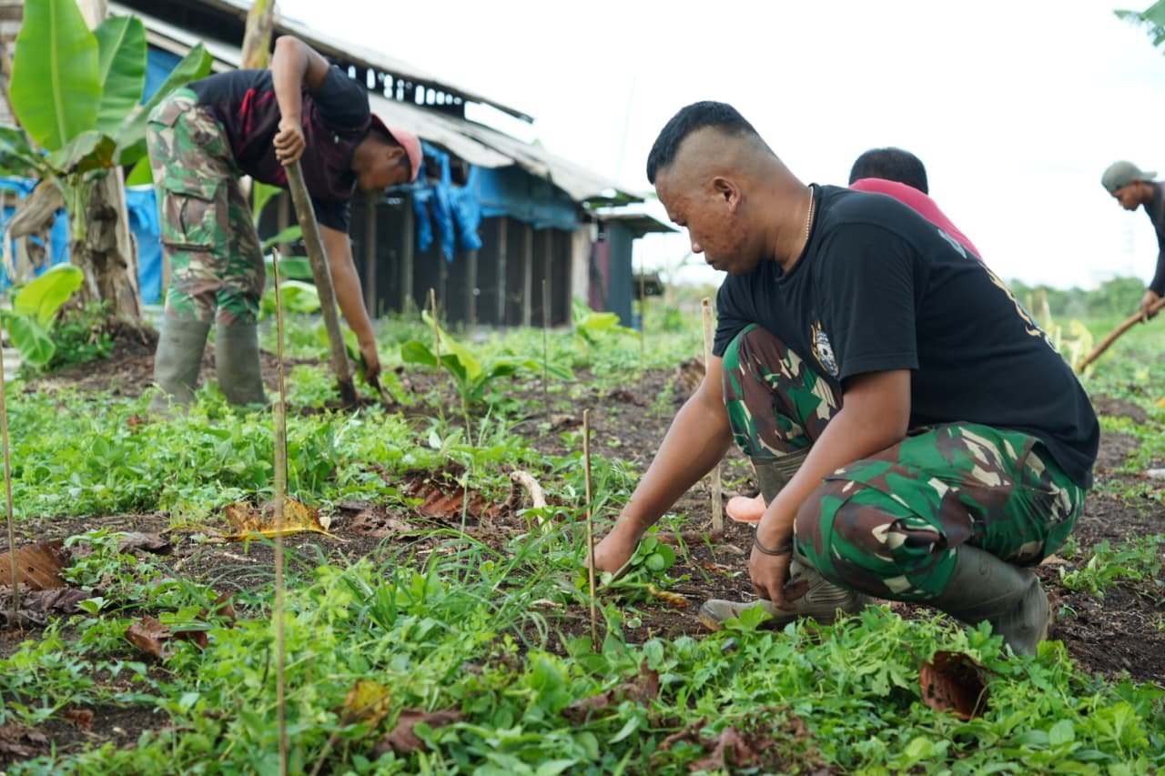 Selain membersihkan lahan, prajurit juga melakukan perawatan intensif seperti penyiraman, pengairan, hingga pemberian pupuk alami. Semua dilakukan agar tanaman dapat tumbuh optimal dan menghasilkan panen maksimal.