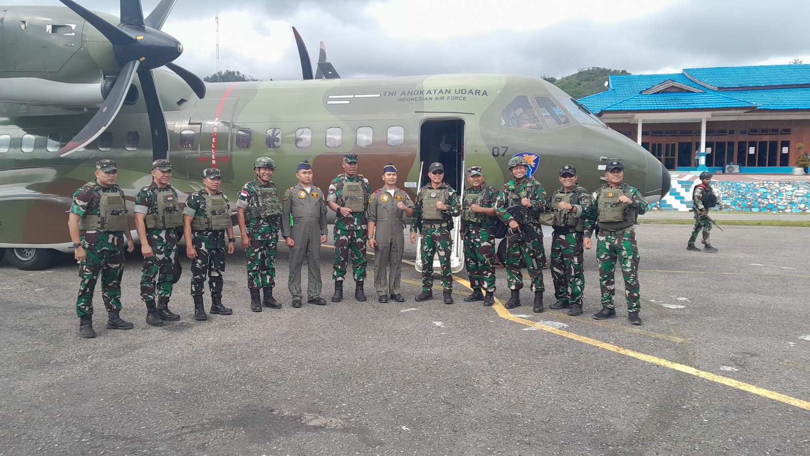 Rombongan tiba menggunakan pesawat TNI AU CN-295 A-2907 dan disambut jajaran TNI setempat serta pemerintah daerah. Suasana di bandara tetap kondusif dan aktivitas operasional berjalan lancar.