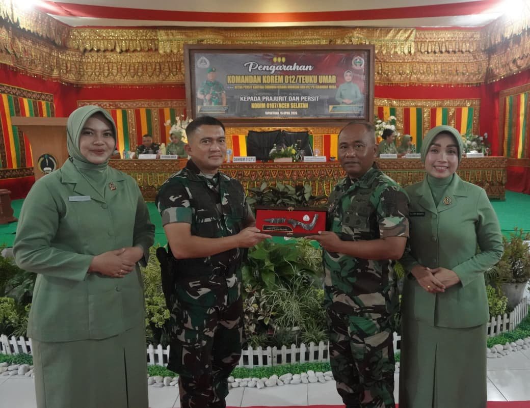 <p><strong>ACEH SELATAN –</strong> Komandan Korem (Danrem) 012/Teuku Umar, Kolonel Inf Windarto, S.Sos., M.M., melaksanakan Kunjungan Kerja ke Kodim 0107/Aceh yang bertempat lhok bengkuang timur,kec Tapak Tuan Kab.Aceh Selatan, Rabu (15/4/2026).</p>