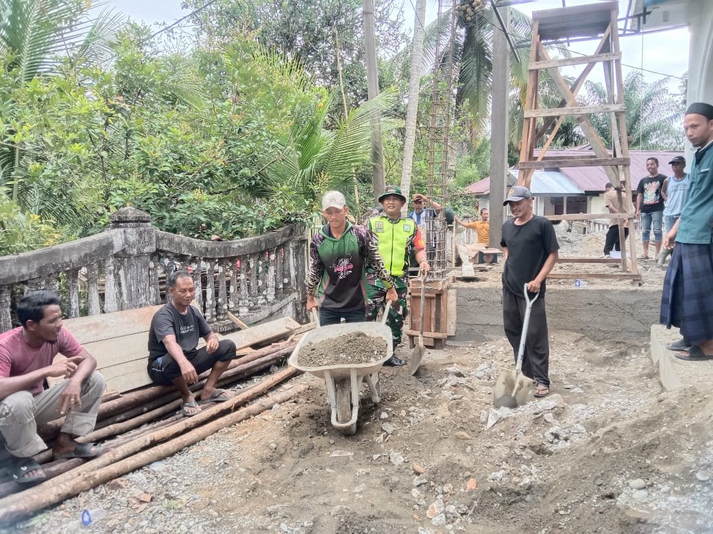 Babinsa membantu warga mengangkat pasir untuk menimbun pondasi rumah merupakan kegiatan kemanunggalan TNI dengan rakyat. Kegiatan ini mencerminkan semangat kepedulian dan pelayanan Babinsa terhadap masyarakat.