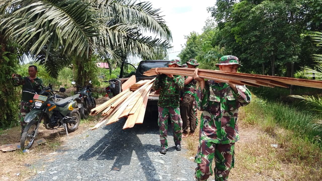 <p>Rabu (22/10), Kapten Inf Tri Hendro, Komandan Satuan Setingkat Kompi (Dan SSK) TMMD Ke-126, menjelaskan, material kayu ini sangat penting untuk memperlancar perehaban.</p>