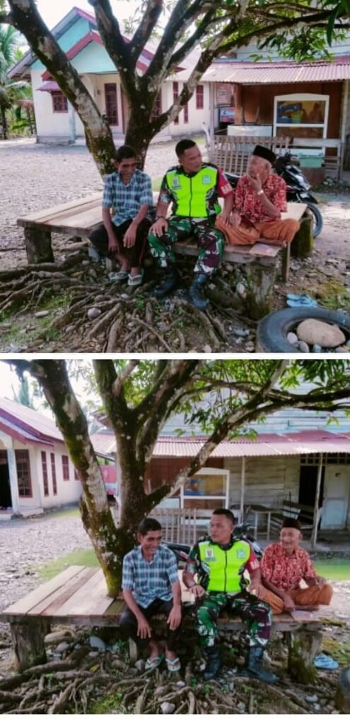 ACEH BARAT – Babinsa Koramil 01/Sungaimas Kodim 0105/Aceh Barat, Koptu Andri Suharsono, melaksanakan kegiatan komunikasi sosial (komsos) bersama warga binaannya di Gampong Geudong, Kecamatan Sungaimas, Kabupaten Aceh Barat, Jumat (20/02/2026).