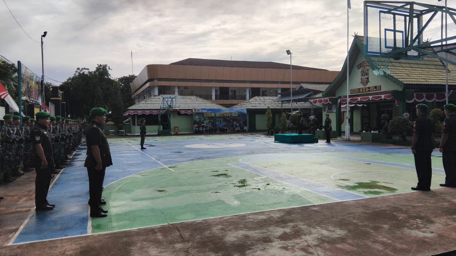 Upacara dipimpin oleh Kapten Inf Sarifudin selaku Inspektur Upacara dan diikuti para Danramil serta seluruh anggota Kodim 1001/HSU.