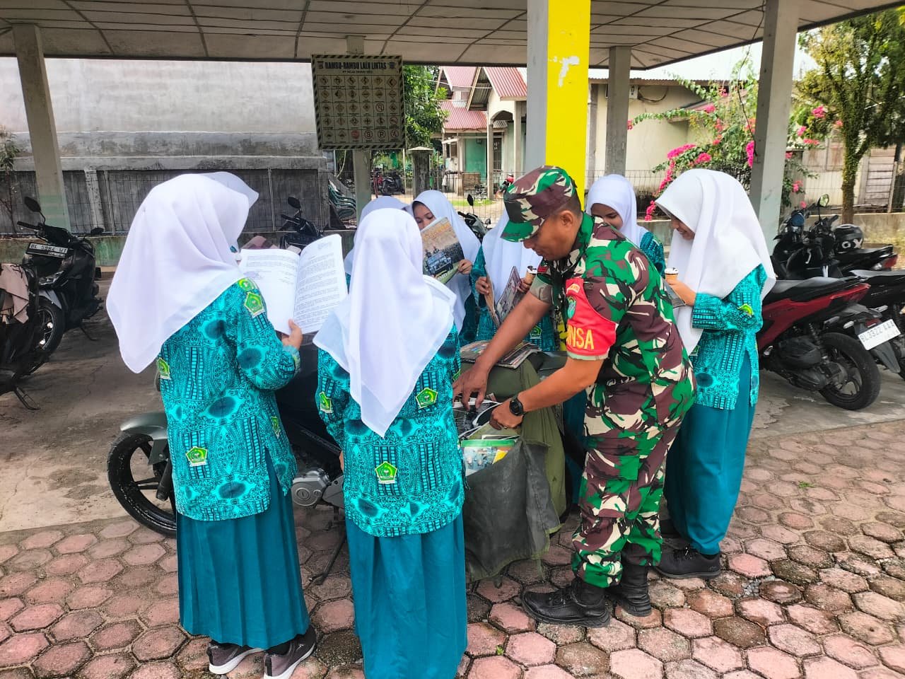 ACEH JAYA – Babinsa Koramil 05/Panga, Sersan Dua (Serda) Izrillah, melaksanakan program inovatif “Motor Pintar” di lingkungan Madrasah Tsanawiyah (MTs) Negeri 5 Panga pada hari Kamis (18/09). Kegiatan ini merupakan salah satu wujud nyata kepedulian TNI Angkatan Darat, khususnya Koramil 05/Panga, dalam upaya mencerdaskan kehidupan bangsa melalui peningkatan minat baca di kalangan generasi muda.