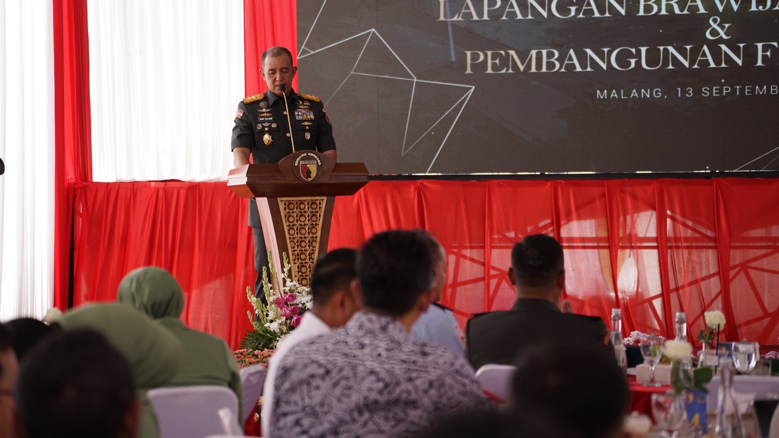 Malang, [13/09/2025] – Pangdam V/Brawijaya, Mayjen TNI Rudy Saladin, M.A., memimpin kegiatan groundbreaking Revitalisasi Lapangan Brawijaya Rampal, Malang. Acara ini turut dihadiri Kapoksahli Pangdam V/Brawijaya, para Pejabat Utama (PJU) Kodam, serta Danrem 083/Baladhika Jaya, Kolonel Inf Kohir.