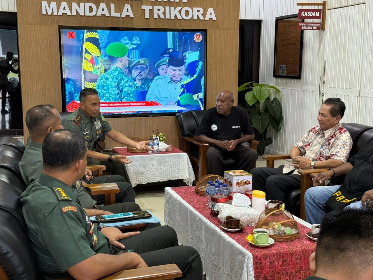 Pertemuan yang berlangsung di Ruang Transit Makodam XXIV/Mandala Trikora ini berjalan lancar dalam suasana yang hangat dan konstruktif. Turut serta mendampingi Pangdam dalam audiensi tersebut, Irdam XXIV/MT Brigjen TNI Dwi Endrosasongko, S.Sos., M.I.P., serta para Asisten Kasdam.