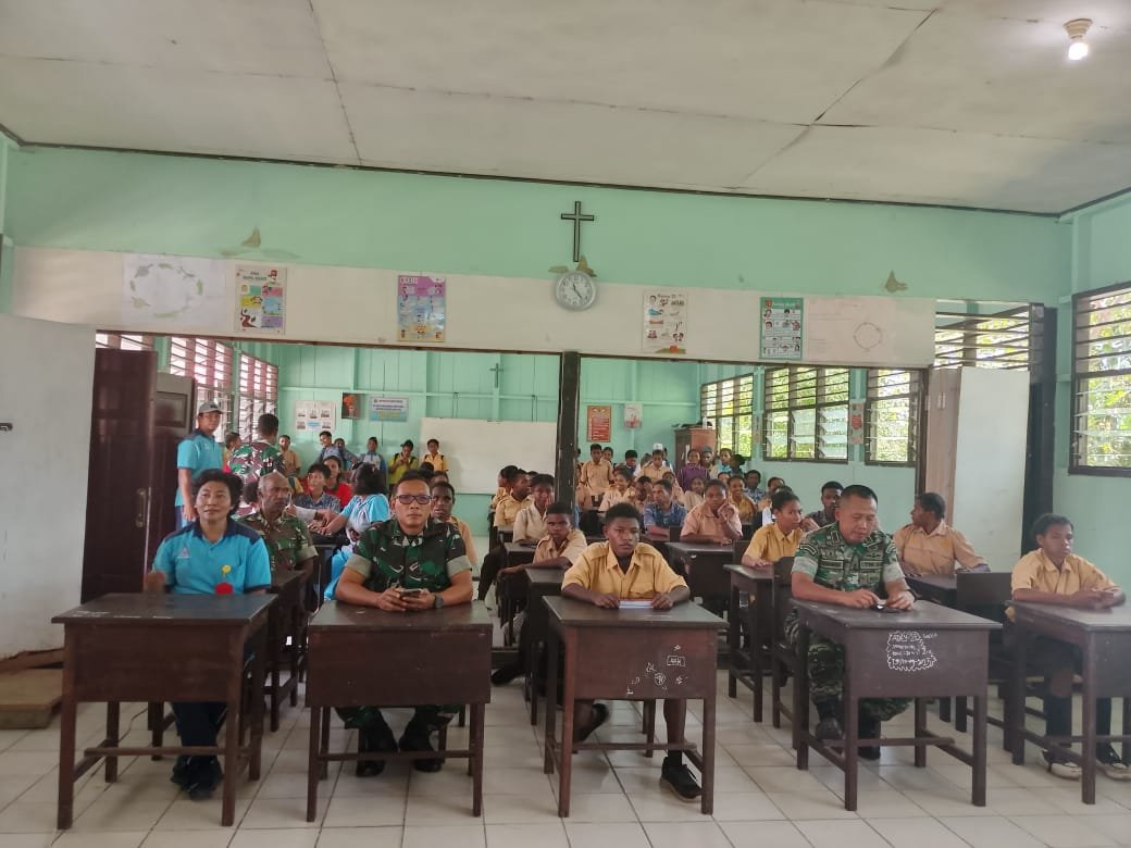 Kegiatan dimulai dengan pelaksanaan Makan Bergizi Nasional (MBN). Program MBN ini merupakan bagian dari upaya peningkatan gizi anak-anak sekolah, khususnya di tingkat dasar, guna mendukung tumbuh kembang optimal dan percepatan penurunan stunting nasional. Kolonel Inf Heri Ruswanto (Wadan Rindam XVIII/Kasuari), bersama Letkol Inf Irwansyah, S.Sos., M.SI (Dandim 1808/Manokwari Selatan), memimpin langsung kegiatan di lokasi.
