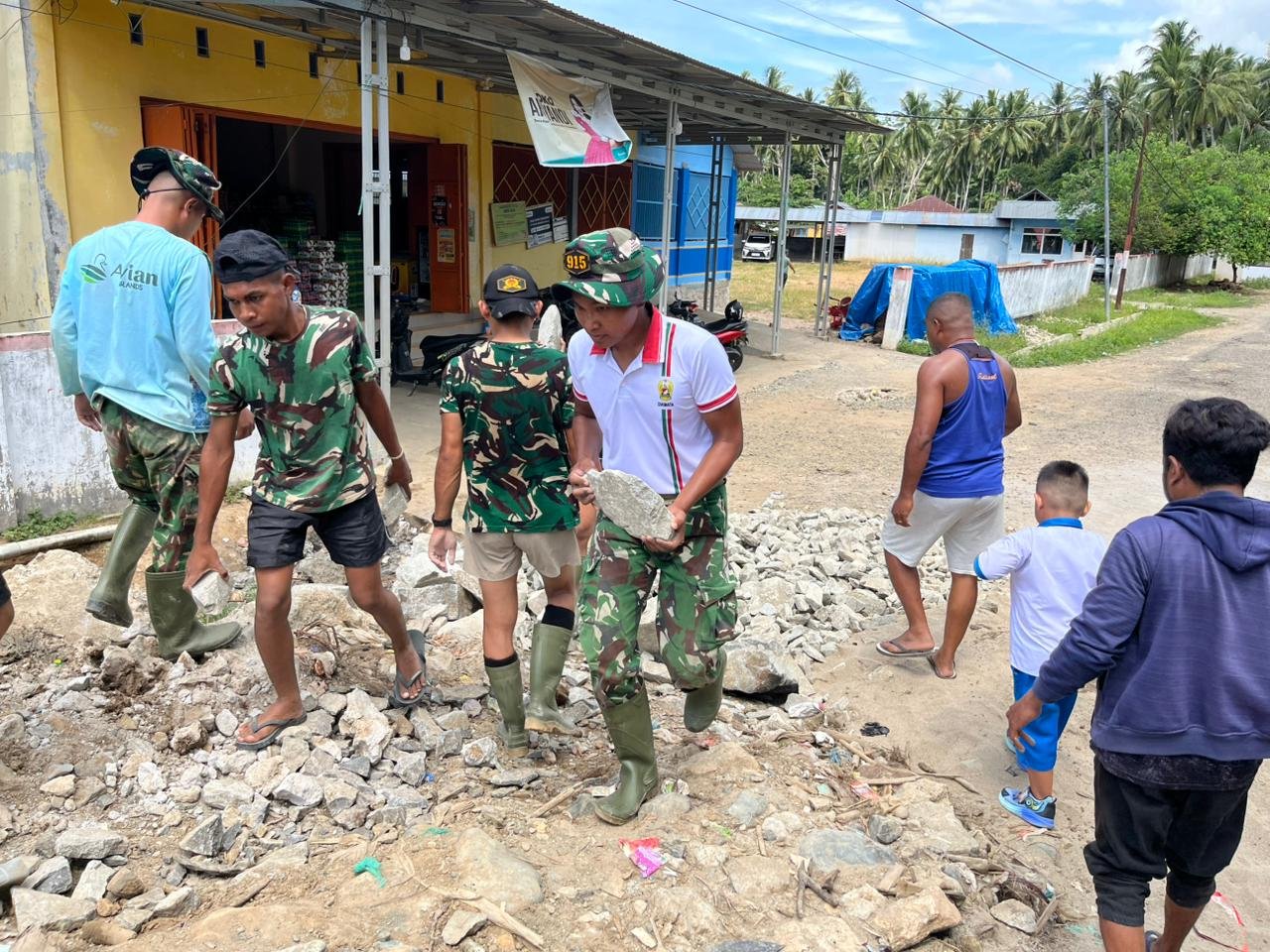 Selain itu, pekerjaan juga difokuskan pada penimbunan material pendukung di sekitar area penyangga jembatan guna memastikan konstruksi memiliki kekuatan yang maksimal. Meski cuaca di lokasi cukup terik, semangat kerja para personel dan warga tetap tinggi dalam menyelesaikan setiap tahapan pembangunan.