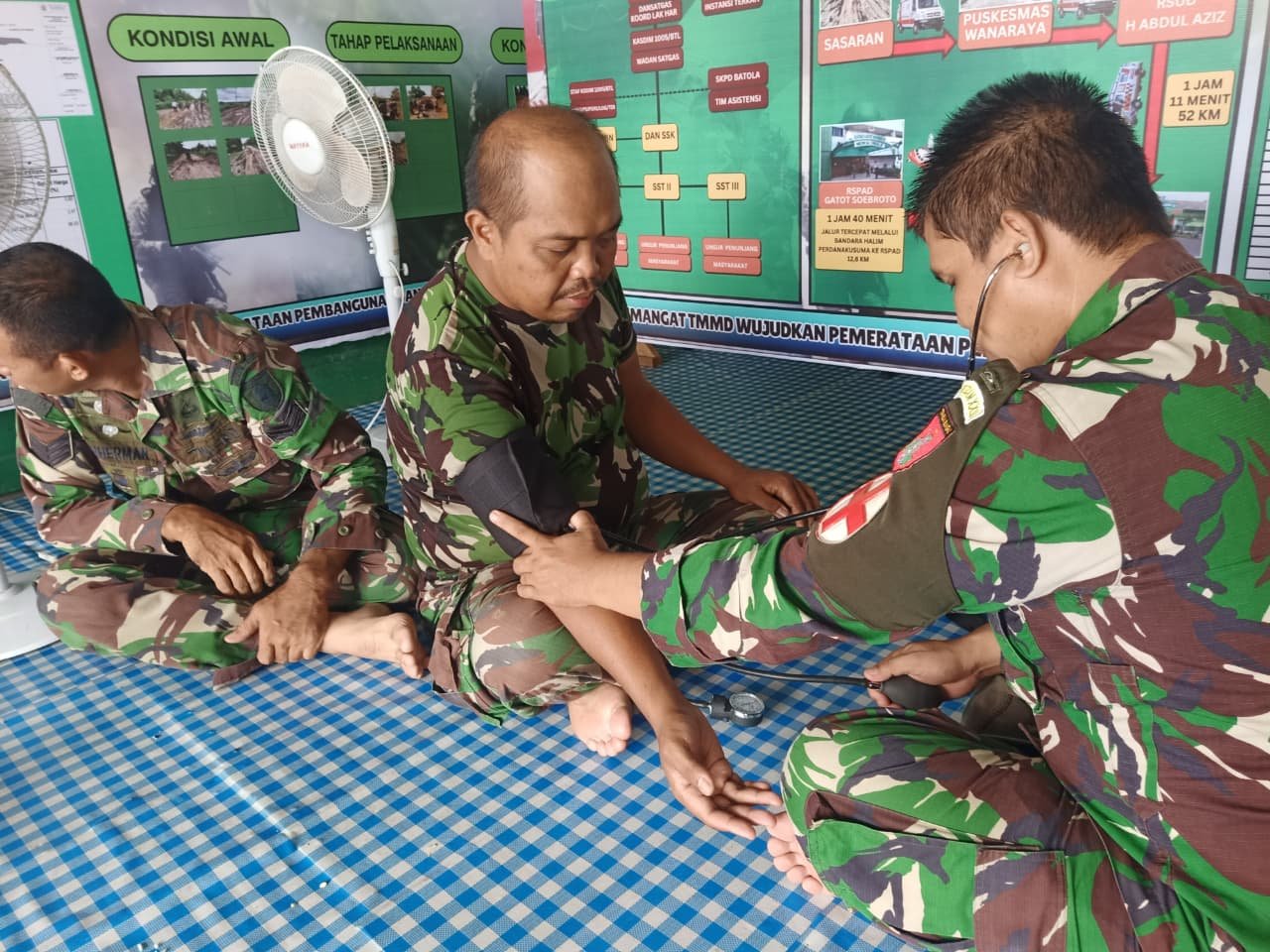 Selain pemeriksaan tekanan darah dan kondisi umum, Serma Asmaran juga memberikan edukasi ringan tentang pentingnya menjaga pola makan dan istirahat cukup.