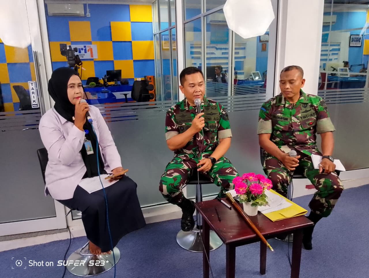 Aceh Barat – Sebagai upaya meningkatkan animo para pemuda Aceh Barat agar mendaftar menjadi anggota TNI AD, Dandim 0105/Abar Letkol Inf S. Kembaren, S.E., M.I.P., didampingi Pasi Personalia Kapten Inf Suna’im melaksanakan sosialisasi atau kampanye kreatif melalui frekuensi udara LPP RRI Meulaboh yang beralamatkan di Jalan Abu Madinah No. 1 Desa Pasi Jambu Kecamatan Kawat XVI, Selasa (30/9/2025)