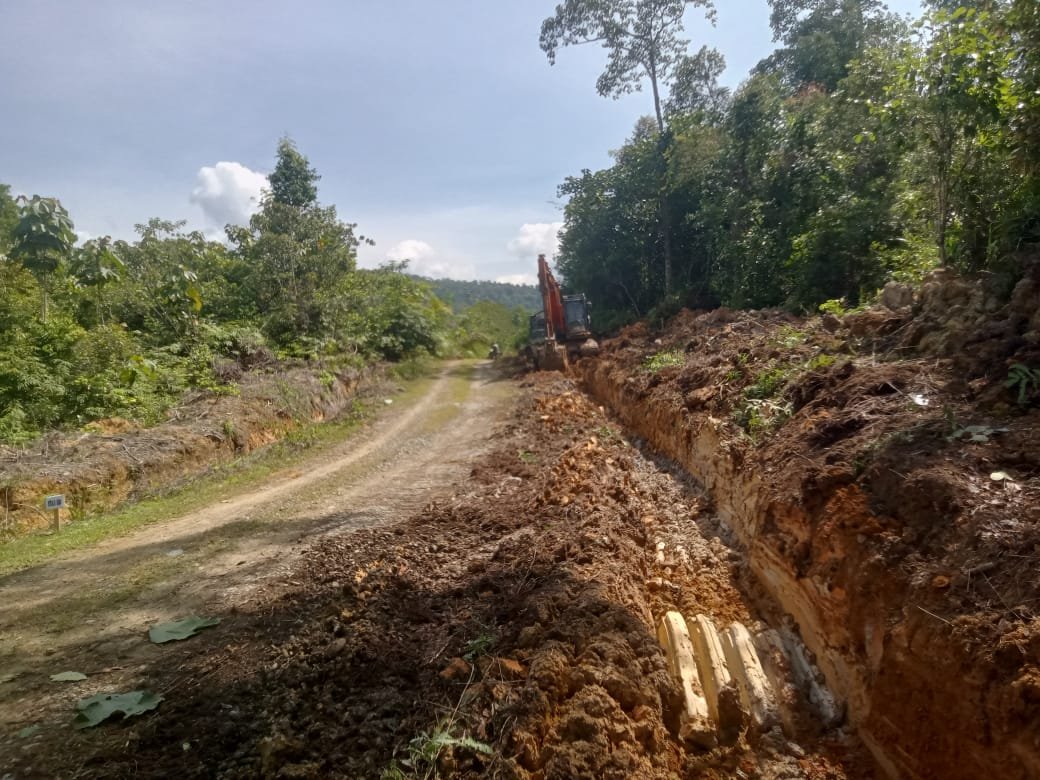 <p>Pekerjaan tidak berhenti pada pembentukan jalan saja. Satgas juga membuat parit di sepanjang sisi jalan sebagai saluran air. Drainase ini berfungsi menjaga stabilitas tanah agar tidak mudah terkikis.</p>