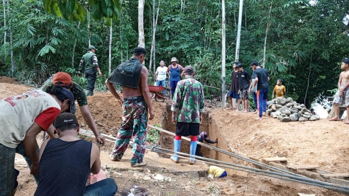 Dengan semangat gotong royong, personel Kodim 1004/Kotabaru bersama masyarakat setempat bahu-membahu melaksanakan proses pembangunan. Mulai dari tahap awal hingga progres terkini, pekerjaan terus dikebut demi mempercepat penyelesaian jembatan yang nantinya akan menjadi akses vital bagi warga Desa Limbungan.