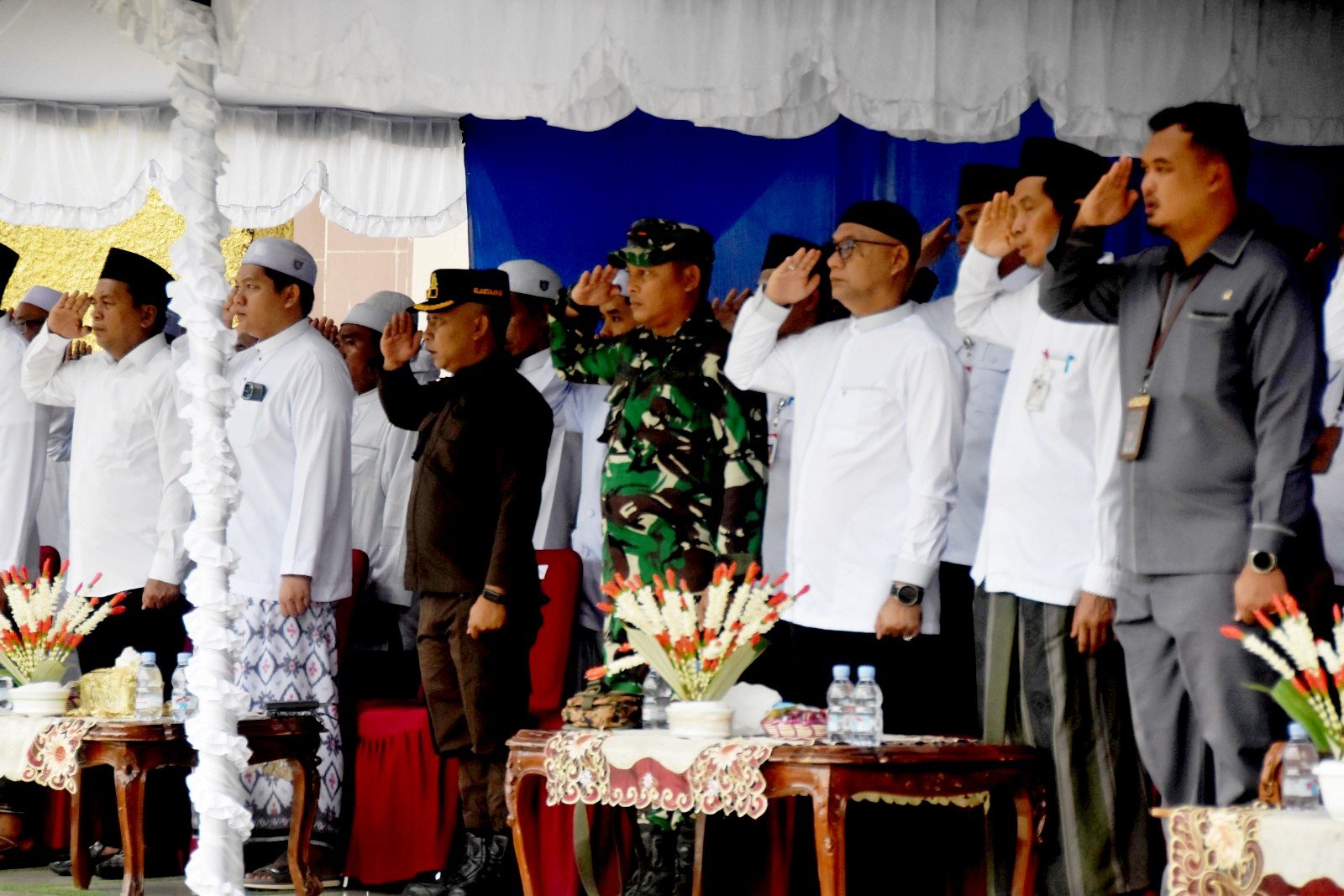 Tampak hadir ditamu undangan VVIP Kapten Cpl Marhani mewakili Komandan Kodim 1003/HSS Letkol Inf Putut Januarto bersama jajaran Fokopimda, Para Habaib, Alim Ulama Tokoh Agama dan pimpinan Pondok Pesantren yang berada diwilayah Kabupaten HSS dan seluruh Santri santriwati sebagai peserta upacara