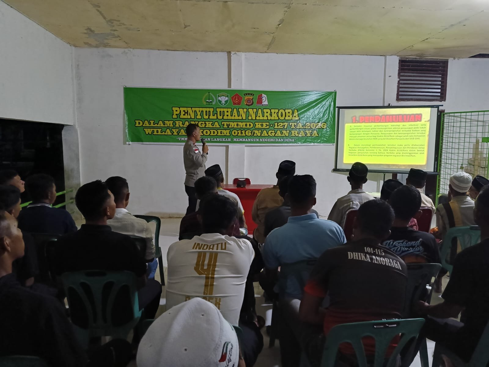 Bertempat di Balai Desa Ujong Blang, Selasa (24/2/2026) malam, Satgas TMMD menggelar penyuluhan bahaya narkoba dengan menghadirkan Aipda Iwan Saputra sebagai narasumber.