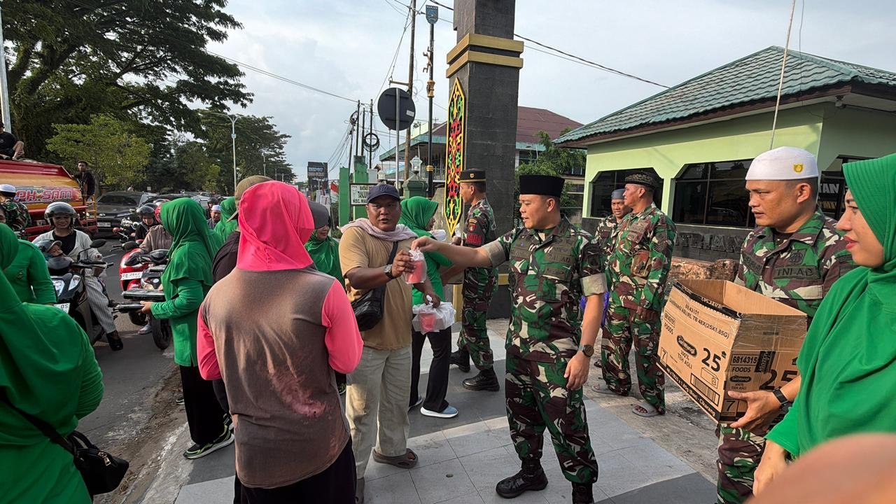 <p>Kegiatan berbagi takjil menjelang waktu berbuka puasa ini dipimpin langsung oleh Dandim 1006/Banjar Letkol Inf Bambang Prasetyo Prabujaya, S.Hub.Int., M.Han. bersama Ketua Persit KCK Cabang XXIX Dim 1006 Ny. Bunga Bambang Prasetyo serta diikuti para prajurit dan anggota Persit. Di lokasi kegiatan, para prajurit dan ibu-ibu Persit tampak dengan penuh semangat dan keakraban membagikan paket takjil kepada masyarakat yang melintas di depan Makodim 1006/Banjar, mulai dari pengendara roda dua, roda empat hingga pejalan kaki.</p>