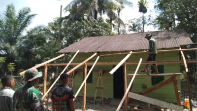 Selasa (3/3/2026), kegiatan tersebut berlangsung penuh kebersamaan. Prajurit dan warga saling membantu, menciptakan suasana kerja yang menyerupai keluarga besar yang sedang memperbaiki halaman rumahnya sendiri.