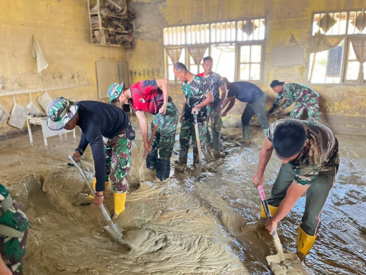 Kegiatan pembersihan tersebut meliputi area ruang kelas, halaman sekolah, serta fasilitas pendukung lainnya. Prajurit Yonif 117/KY membersihkan lingkungan guna menciptakan suasana belajar yang bersih, sehat, dan nyaman bagi para siswa.