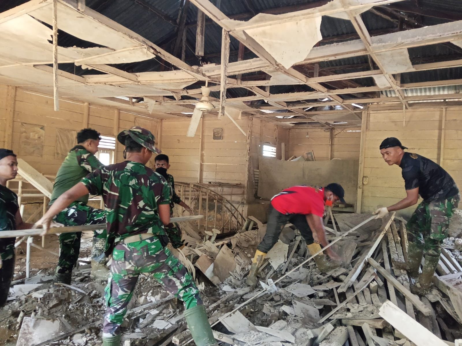 Aceh Tamiang – Prajurit Batalyon Infanteri 117/Ksatria Yudha melaksanakan kegiatan pembersihan di Polindes (Poliklinik Desa) Alur Manis, Kecamatan Rantau, Kabupaten Aceh Tamiang, sebagai wujud kepedulian TNI AD terhadap kebersihan lingkungan dan kesehatan masyarakat.
