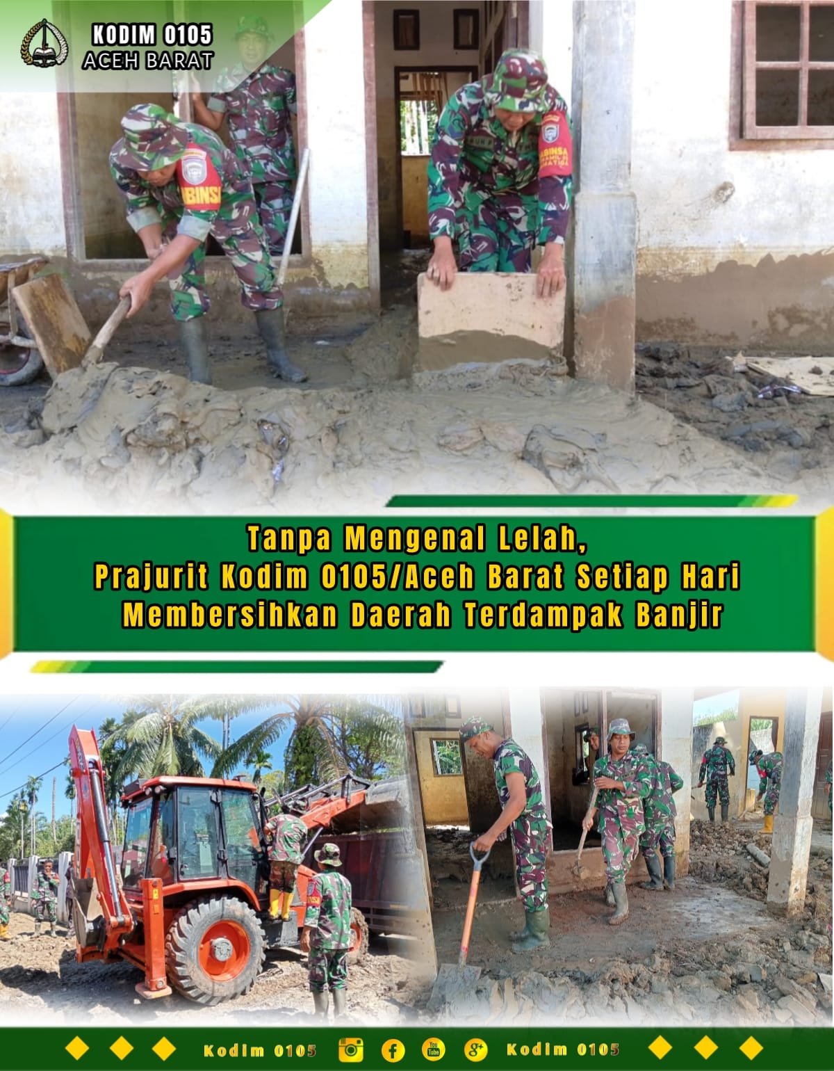 <p><strong>ACEH BARAT</strong> – Pasca bencana, prajurit Kodim 0105/Aceh Barat setiap hari terus membersihkan daerah yang terdampak banjir di Kecamatan Woyla. Langkah ini merupakan wujud nyata kepedulian TNI terhadap masyarakat yang sedang berjuang memulihkan kehidupan mereka, Senin (12/01/2026).</p>