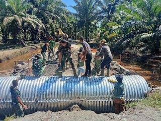 Prajurit Kodim 0116/Nagan Raya Jajaran Korem 012/TU Bangun Jembatan Aramco di Kuala Tripa