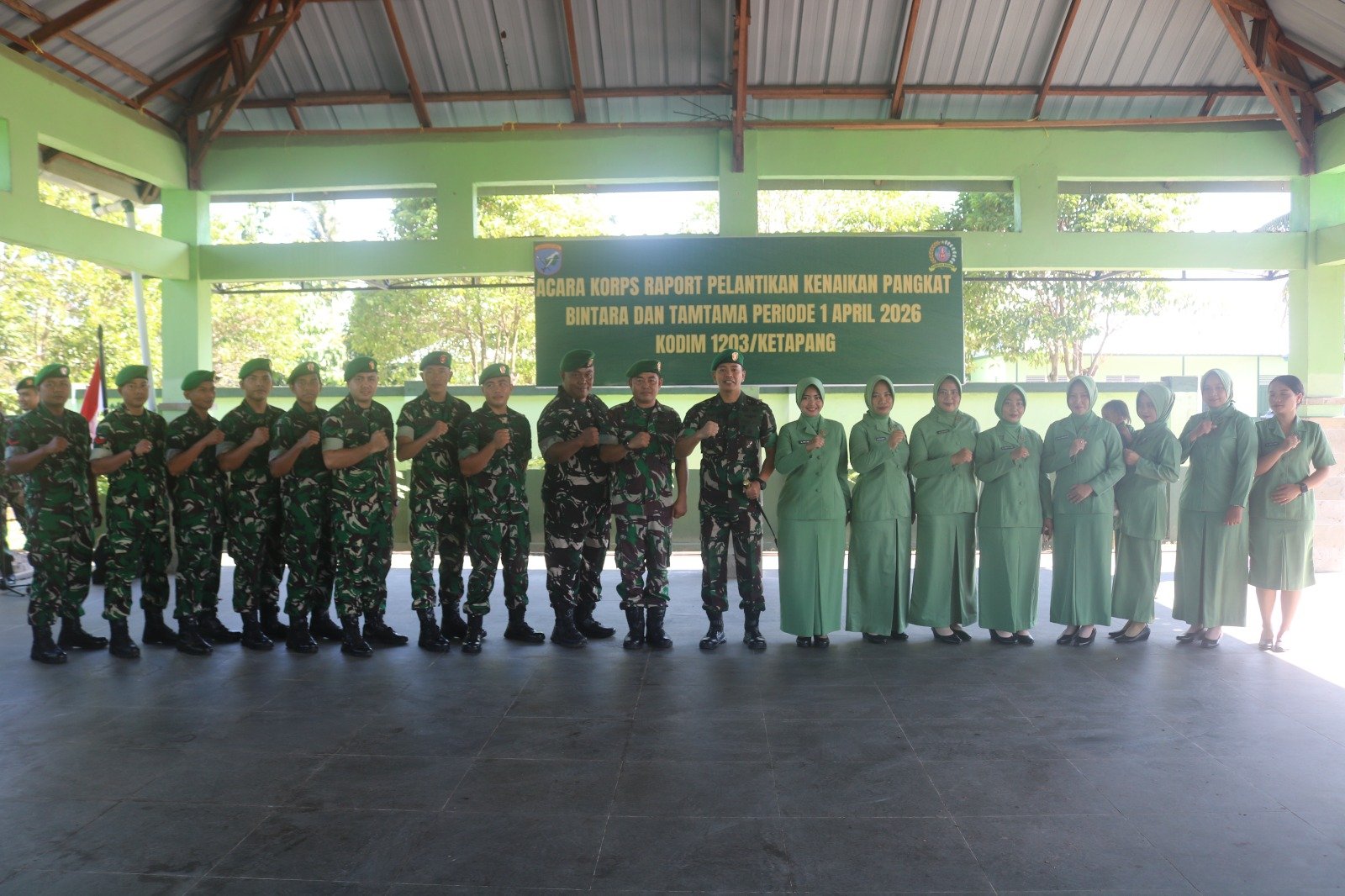 <p><strong>Ketapang –</strong> Suasana khidmat dan penuh kebanggaan mewarnai pelaksanaan upacara kenaikan pangkat Bintara dan Tamtama Kodim 1203/Ketapang periode 1 April 2026 yang digelar di Aula Serba Guna Kodim 1203/Ketapang, Rabu (01/04/2026).</p>