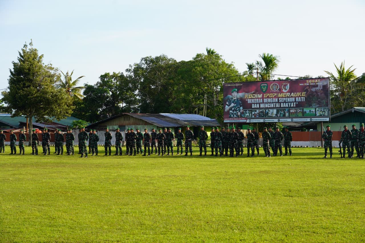 ‎Kegiatan tersebut turut dihadiri sejumlah pejabat jajaran Korem 174/ATW dan Kodim 1707/Merauke, di antaranya Kasi Pers Kasrem 174/ATW Kolonel Inf Wildan Bahtiar, S.I.P., M.I.P., Kasi Ops Kasrem 174/ATW Kolonel Inf Ustadi Rahmad, serta para perwira staf dan komandan satuan lainnya. Susunan pasukan terdiri dari satu peleton Pamen, satu peleton Pama, dua SSK Korem 174/ATW tanpa senjata, dan satu SSK Kodim 1707/Merauke bersenjata.