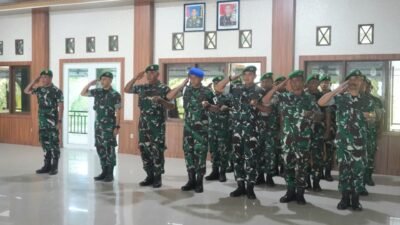‎Merauke – Upacara Bendera 17-an Bulan Februari 2026 gabungan Korem 174/ATW dan Kodim 1707/Merauke berlangsung khidmat di Lapangan Makodim 1707/Merauke, Jalan Raya Mandala, Distrik Merauke, Kabupaten Merauke, Provinsi Papua Selatan, Rabu (18/2/2026).