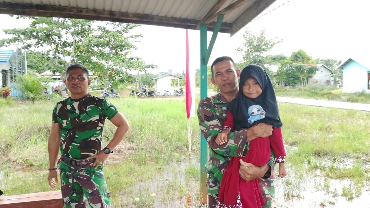 BARITO KUALA – Suasana keakraban dan keceriaan tampak mewarnai kegiatan Satgas TMMD Ke-126 Kodim 1005/Barito Kuala di Desa Tumih, Kecamatan Wanaraya. Di sela-sela tugas pembangunan, para prajurit TNI tidak lupa meluangkan waktu berinteraksi dengan anak-anak setempat, Jumat (31/10).
