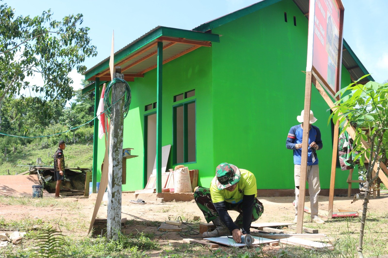 Prajurit TNI Lanjutkan Sentuhan Akhir Rumah Layak Huni di Kutai Timur melalui TMMD 125